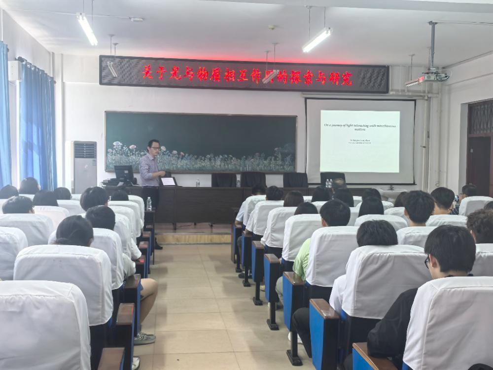 2025年9月1日下午,永利皇宫官网邀请英国赫尔大学工程学院赵江波博士,在综合实验楼学术报告厅举办《关于光与物质相互作用的探索和研究》学术报告会,该项活动是我校建校60周年系列学术活动之一。报告会由副院长崔峰主持,相关专业师生参加了报告会。