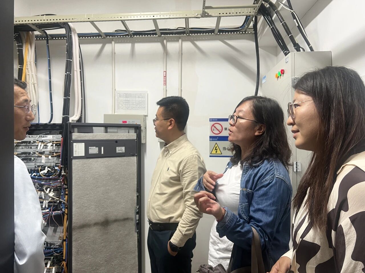 大庆移动让胡路分公司总经理高振,网络维护主任丛秀亮、集团客户部主任申翰热情接待了学院一行,并陪同参观了让胡路区核心机房和办公环境,重点介绍了依托5G通信网络的无线、传输及家庭宽带等核心业务流程。