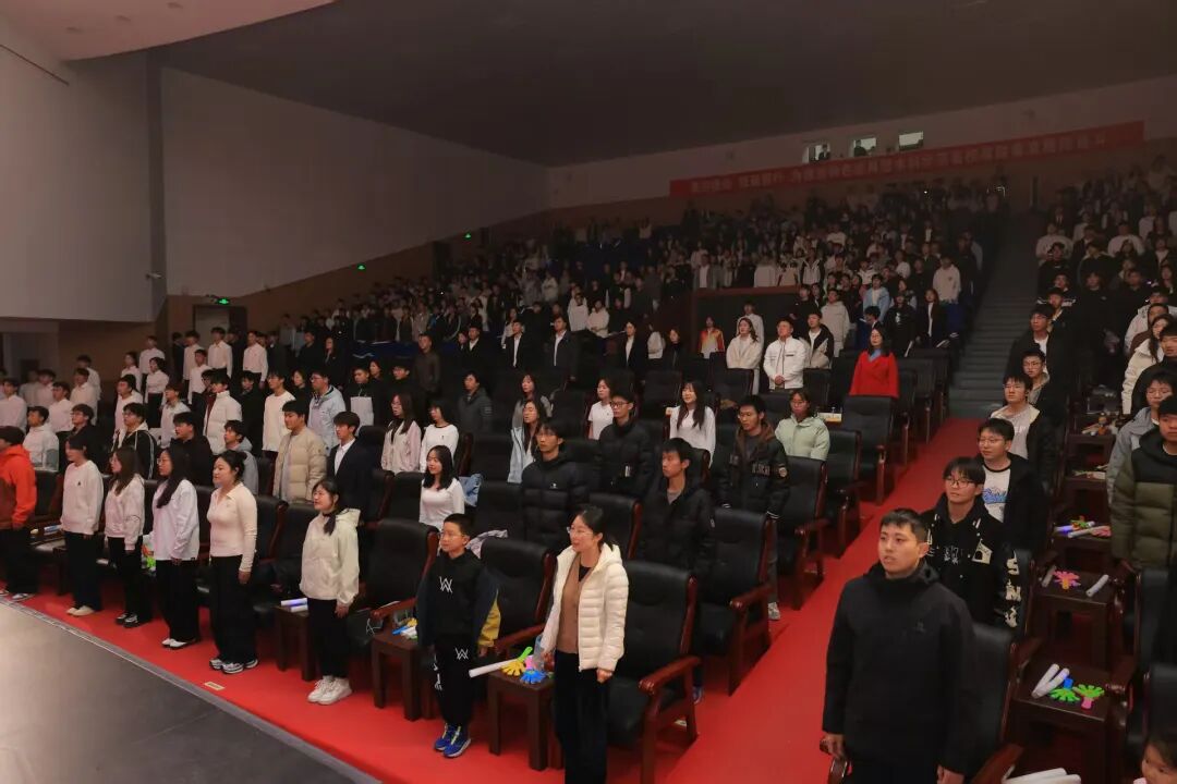 激昂庄严的中华人民共和国国歌奏响,全体人员肃立行注目礼,开学典礼正式拉开帷幕。