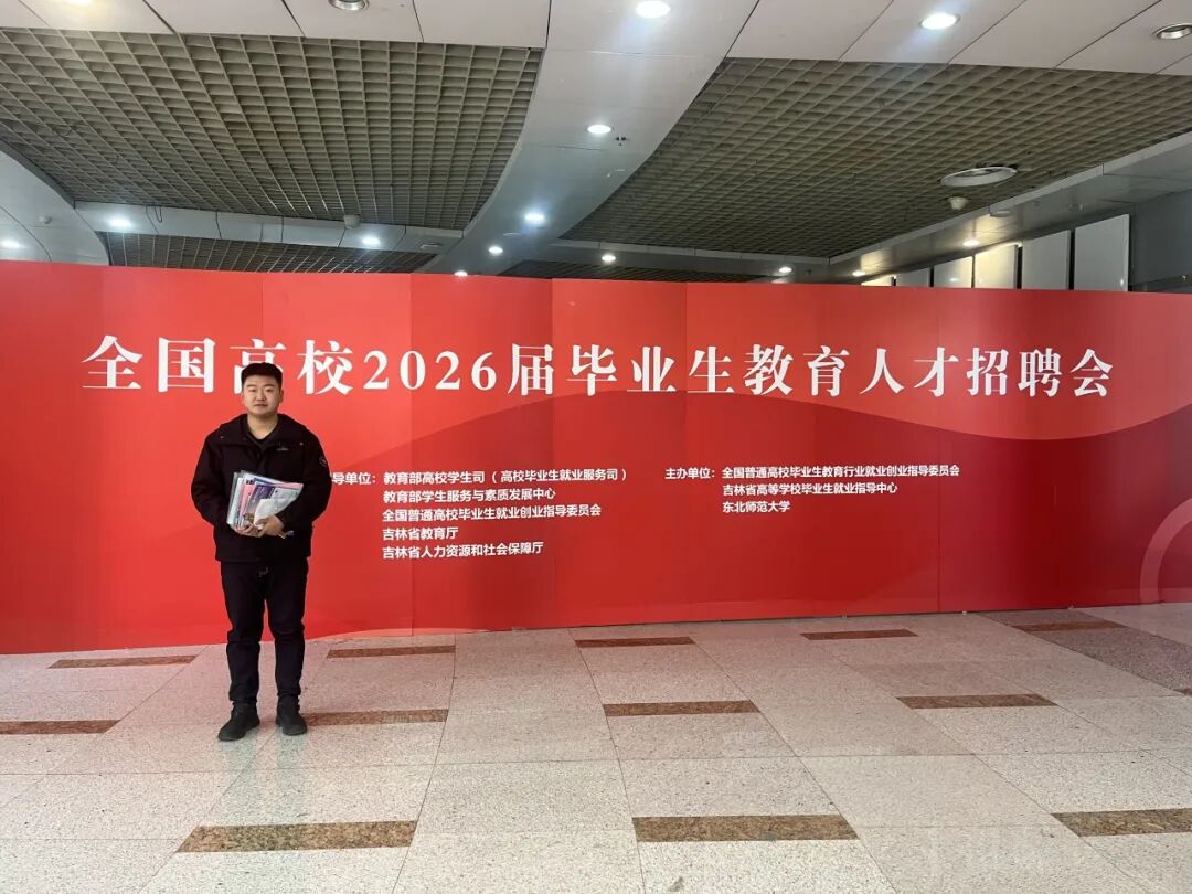 为积极拓展就业市场,精准契合用人单位需求,全力推动我院2026届毕业生实现更充分、更高质量的就业,11月22日,学院辅导员李博文前往吉林省长春市,参加“全国高校2026届毕业生教育人才招聘会”。此举旨在精准掌握就业市场动态,为我院2026届毕业生顺利且高质量就业搭建桥梁、拓宽渠道。
